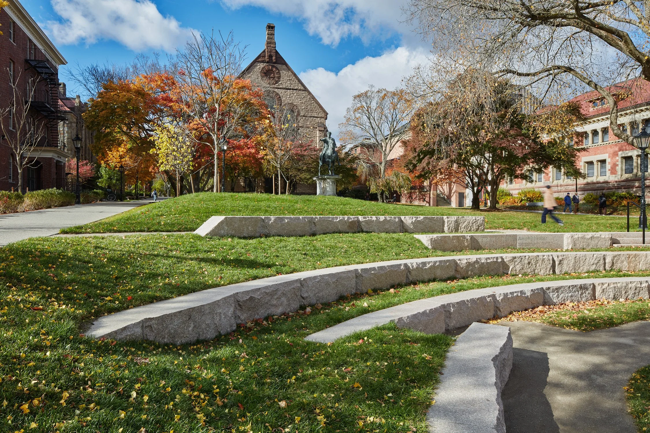 The Stephen Sondheim Amphitheater and Accessibility Project is an adaptive re-use of the Ruth J. Simmons Quad, a historic gathering space at the heart of Brown University’s campus. Situated between the Main Green, Manning Walk, and the Art Walk, this project revitalizes a central crossroads by updating a beloved space for new programming and for universal accessibility. The design layers in seating for events and casual hanging out, accessible pathways that better connect the greater campus, and accommodations and infrastructure for performances, tented events, and large gatherings. The project enhances the quad’s function as a central space for gathering, performance, study, relaxation, circulation, and informal recreation, rendering it a more vibrant and inclusive hub for the university community